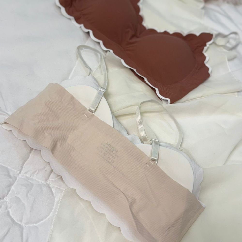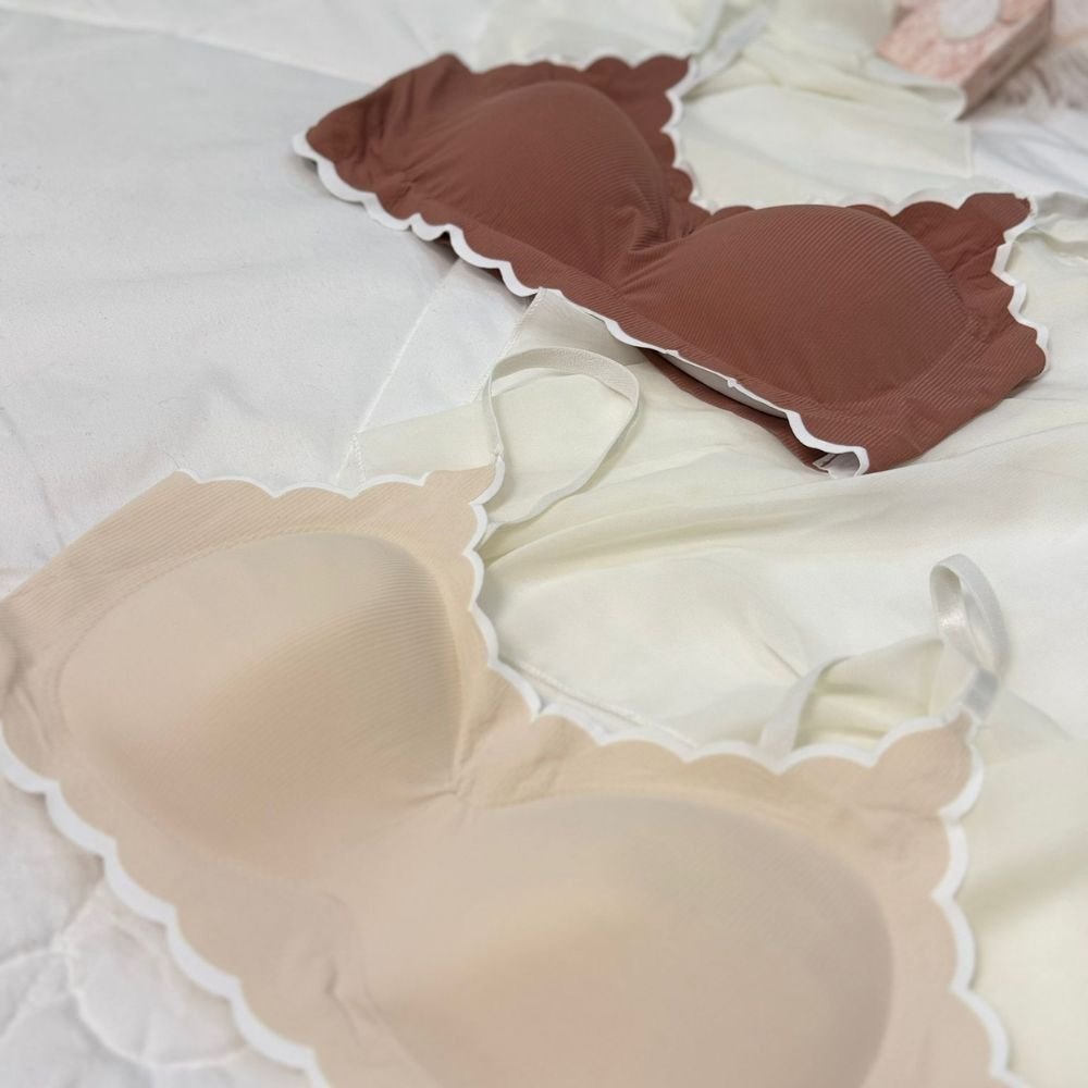 ستيانات بألوان دافئة (بني، وردي) مع حواف متعرجة تضيف لمسة من الجمال العصري. تتميز بتصميم بسيط ومريح مع حمالات قابلة للتعديل، مما يجعلها مثالية للاستخدام اليومي. القماش الناعم يوفر الراحة والدعم، مما يجعلها خياراً ممتازاً للراحة طوال اليوم