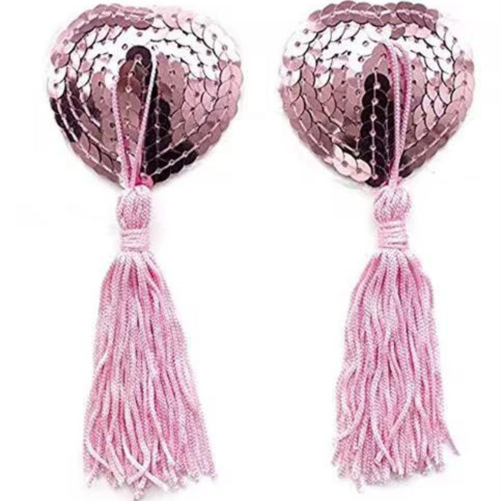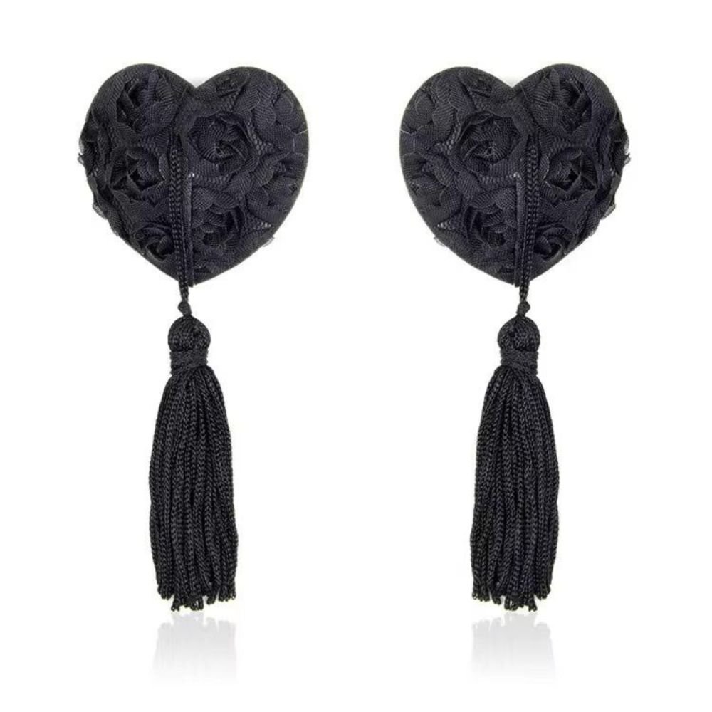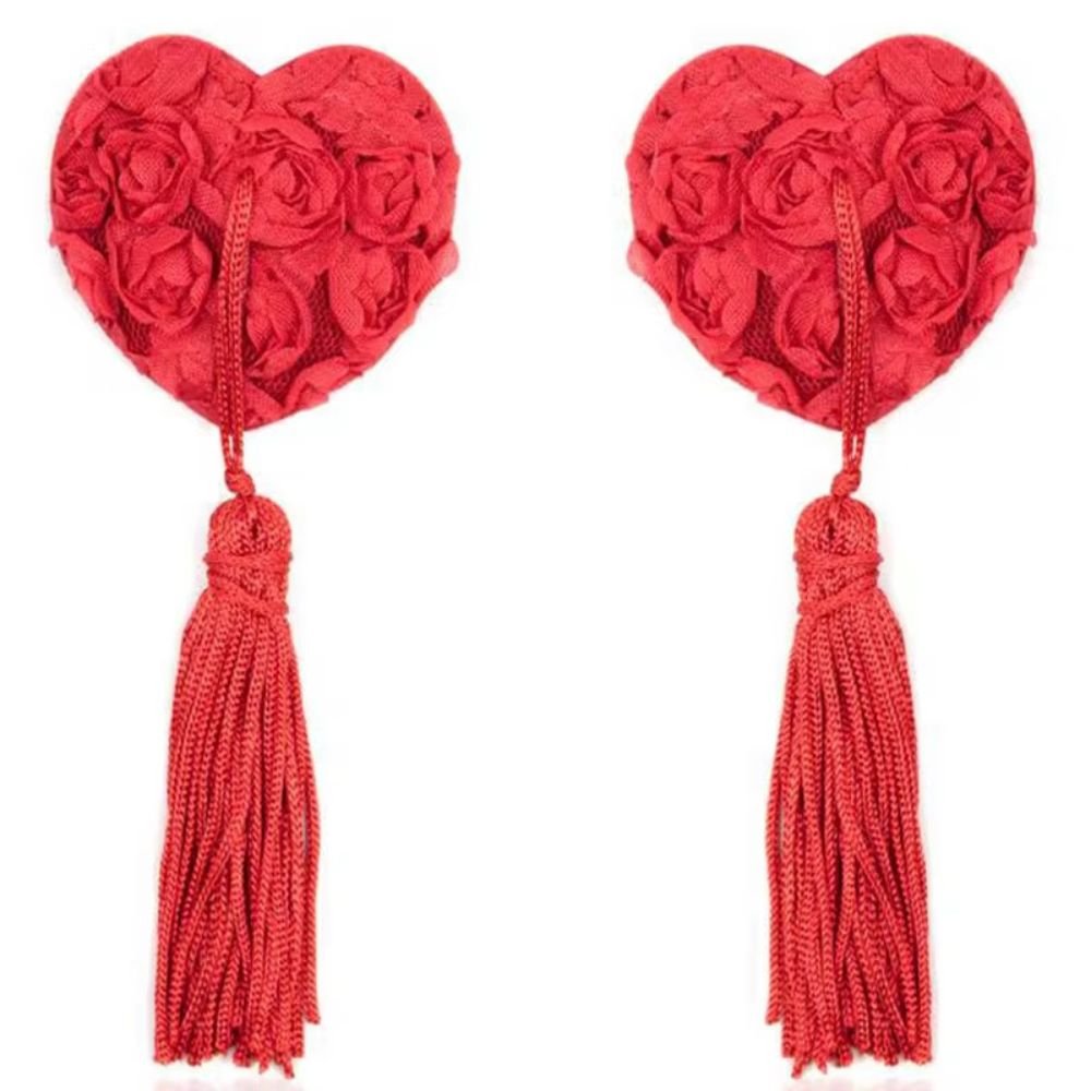 غطاء حلمات صدر بتصميم فني مميز على شكل قلب مزخرف بالورود مع خيوط منسوجة بشكل مميز كإضافات أنثوية جذابة