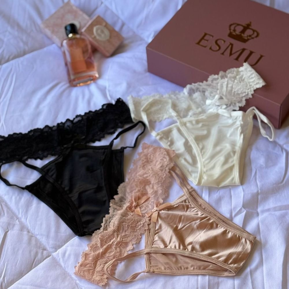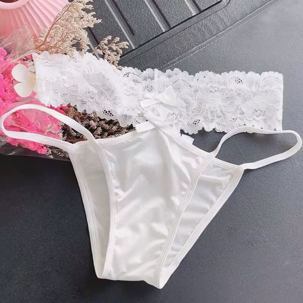 ملابس داخلية أنثوية، تتميز بتفاصيل دانتيل رقيقة عند الحواف مع شريط مميز في المقدمة. التصميم يجمع بين الأناقة والبساطة، مما يجعله مثاليًا لإطلالة ناعمة وفاخرة